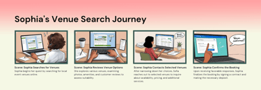 • They need to see venue locations on a map to evaluate convenience and accessibility.