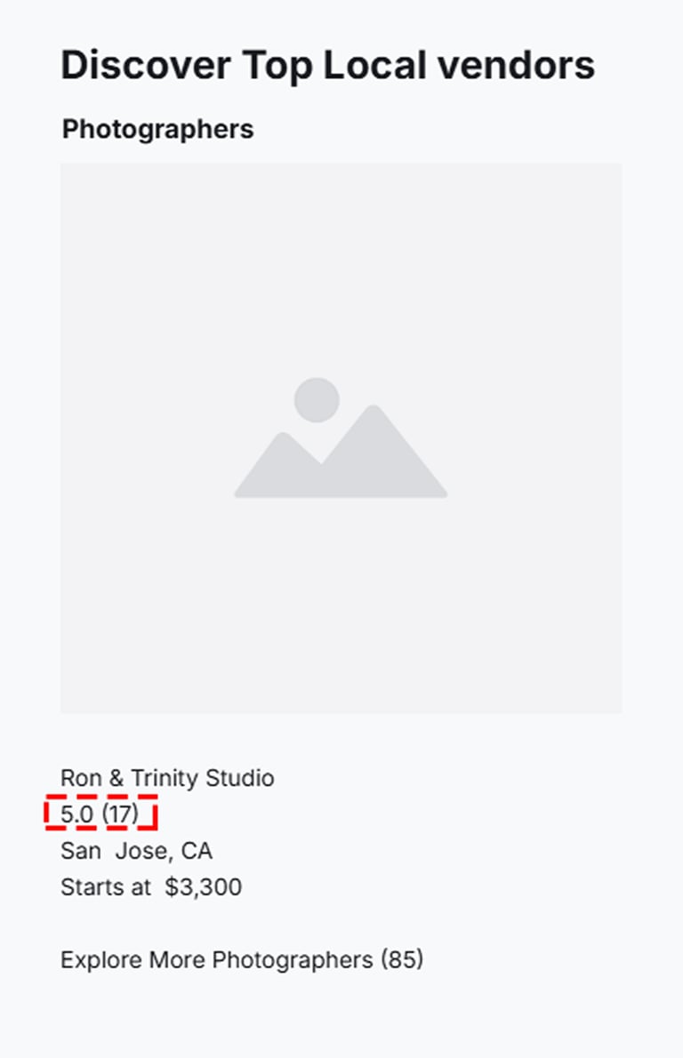 • Accessible Vendor Search: Organizes vendors into intuitive categories (venues, photographers, music, etc.), helping users easily navigate a wide range of services and minimizing search effort.