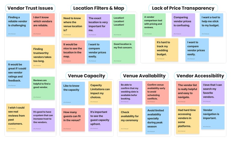 The affinity diagram revealed 5 common pain points users face when planning events: