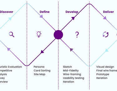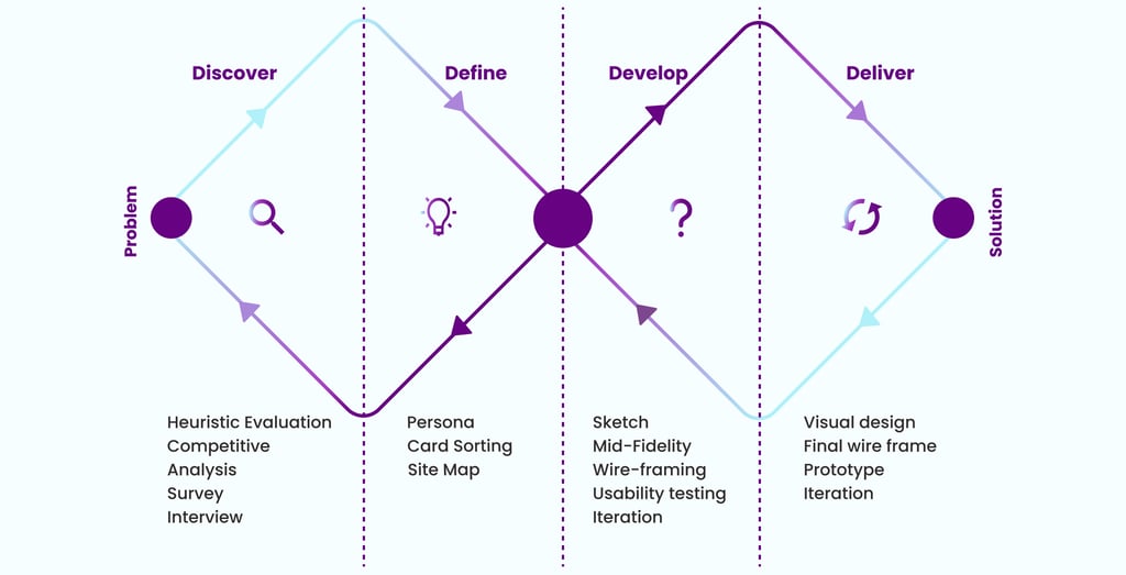 My teammate and I adopted the Double Diamond methodology to structure our design process. This allowed us to navigate from research to implementation systematically and user-centered.