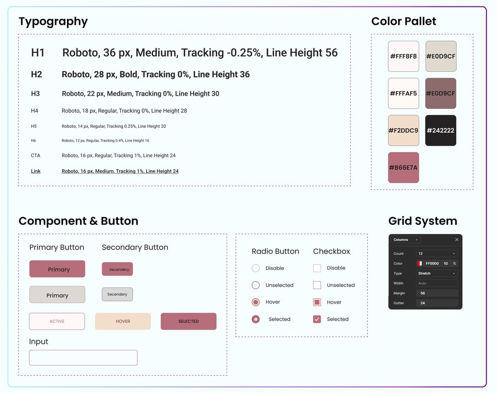 This UI Kit was created to keep the designs consistent and clean. It includes all the core elements — from typography and colors to buttons and icons — and it helped ensure organization and speed throughout the design process.