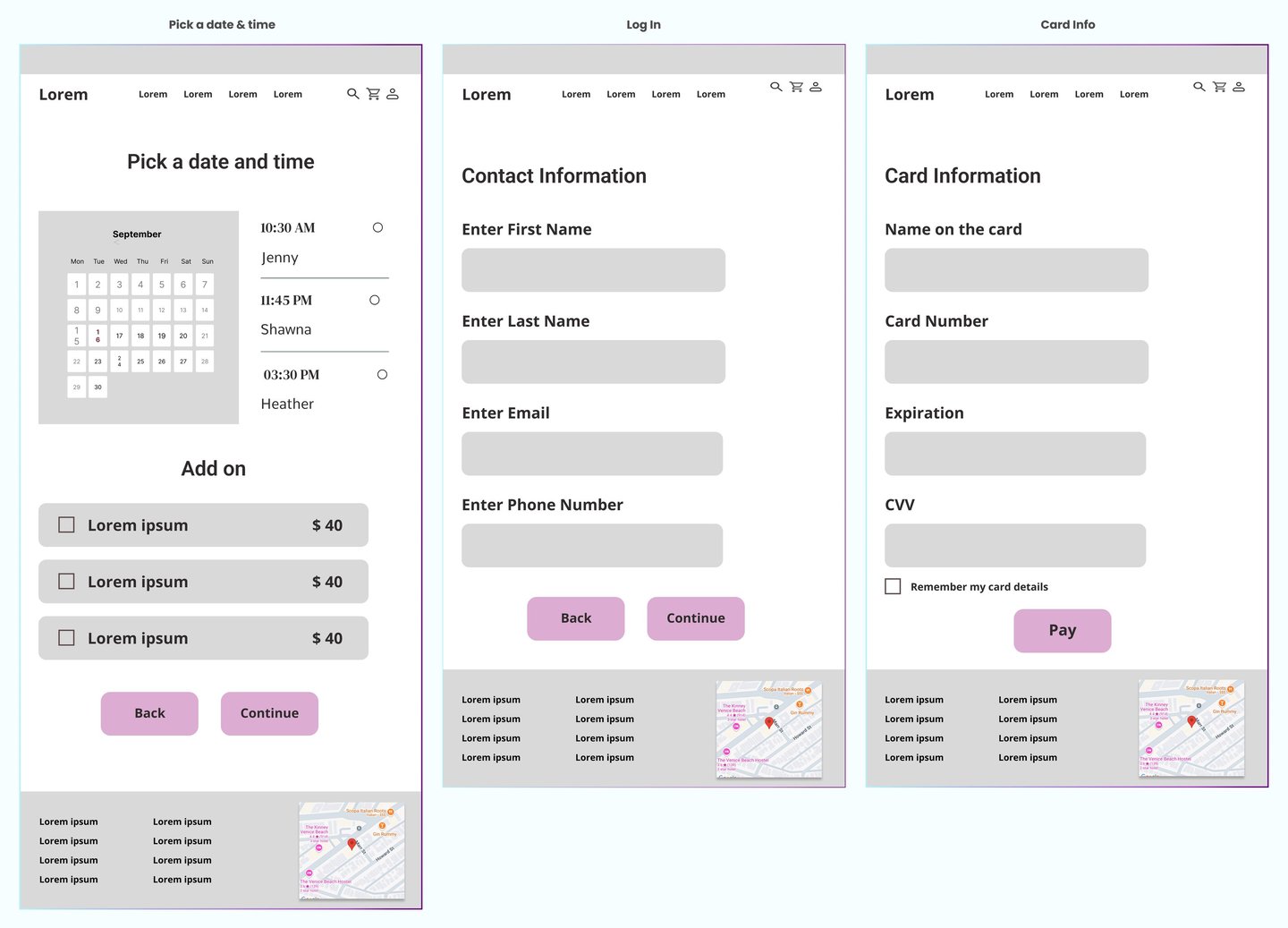 By analyzing competitor websites, we learned how to create a more user-friendly booking flow by simplifying steps and using clear progress indicators. We also gained insights into organizing content more effectively through better visual hierarchy and grouping, which helped shape our information architecture.
